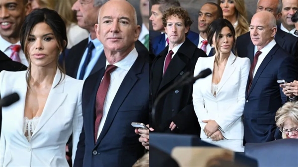贝佐斯这么会来事,特朗普自然非常受用。在那之后,贝佐斯就成为了特朗普全家的好朋友,他和桑切斯受邀参加了特朗普的第二任期就职典礼,桑切斯的低胸装在那个场合成为了全球媒体的关注焦点。