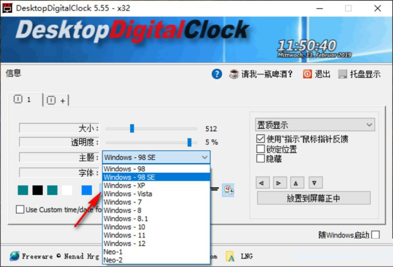 3、支持透明度设置,需要将时钟置顶就可以调整透明度