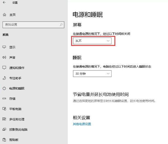 如果显示了一段时间就黑屏了,进入设置——系统——电源和睡眠——屏幕——选择从不
