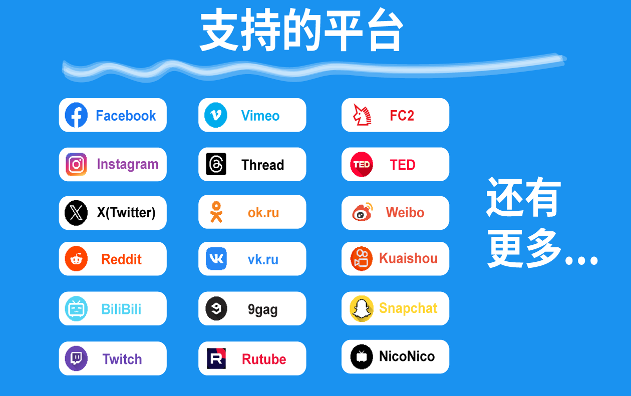 轻松从 Telegram、X、Bilibili、抖音 以及超过 1000+ 网站下载视频。