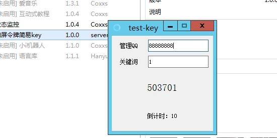 令牌锁屏内置源码是一款自写锁屏工具,60s令牌版酷Q版,内置源码,内置简易算法,每60秒换一次密码,本地计算。密码获取需要配合酷Q发送指令获取,或者自己用别的计算也行,算法(瞎写的,其实不算是算法)可以自己改。 软件说明 屏蔽功能键,自动结束任务管理器进程 添加全屏磨砂玻璃效果 UI和透明度不喜欢的可以自己在源码里改 酷Q不会用,不会编译的自己百度,非常简单 压缩包里有源码+模块+酷q源码+酷q成品 使用说明 安全密码和应用程序设置是相同的。在使用之前,请务必校准计算机的时间 内置源码 令牌锁屏