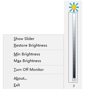 如果在通知区域中右键单击“阳光”图标亮度,则将再次出现弹出菜单;否则,将弹出菜单。如果您用鼠标左键单击该图标,则会再次显示滑块。