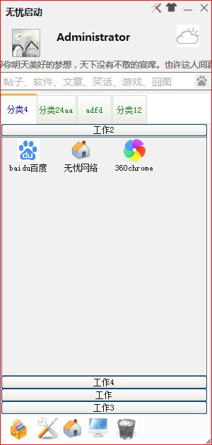 无忧启动是一款快捷启动软件,操作直观、简便,可以很方便的添加程序快捷方式、盘符、文件夹链接、网址,并且支持换肤和邮箱检测等功能,资源占用很小,而且完全免费,而软件以超仿真QQ界面的形式,结合桌面工具的特点,应用于软件,文件夹,网址的快捷操作!