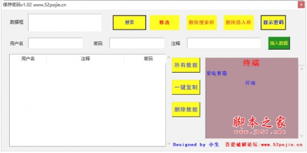 保存密码工具是一款小巧专业的日常密码保存软件。软件功能强劲,绿色实用,支持将用户名和密码保存在数据库中,使用的时间只要选择需要登陆的网站,就可以自动填写相关的信息。这款密码保存软件对于有大量帐户需要管理的用户来说,是一个很有帮助的工具。