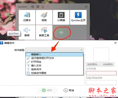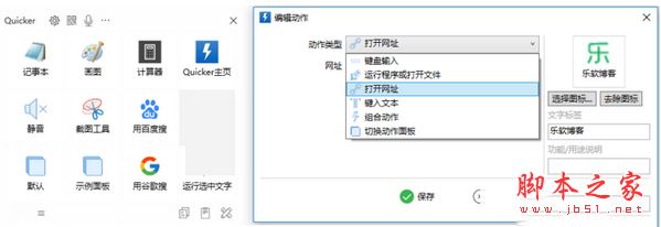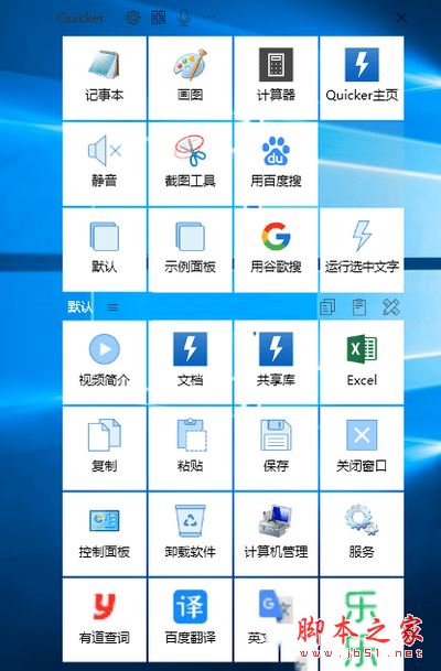 Quicker上方的面板是默认的全局固定快捷面板,与其他快速启动工具一样,你可以自定义添加软件程序,或者也可以添加各种动作,例如打开网址等