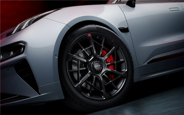 该车配备了五周年专属红底车标,提供冰川银车身配色搭配撞色车顶,并搭载FR-LINE性能套件,包括性能金属踏板、FR-LINE迎宾踏板、22英寸暗影黑锻造轮毂、极氪品牌定制倍耐力PZERO高性能轮胎、Brembo六活塞红色卡钳,动感造型,视觉张力与个性拉满,区分常规版本视觉特征。