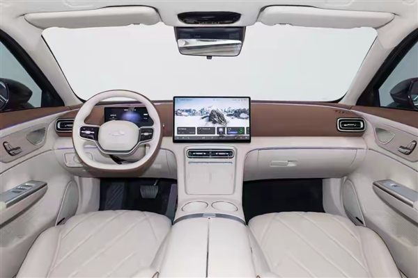 方向盘采用双辐设计,前方为悬浮式数字仪表,中控区配备15.6英寸屏幕,副仪表台具备无线充电平台和香氛系统。
