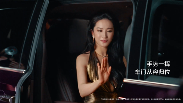 此外,智界V9侧滑门还支持手势控制,刘亦菲只需轻轻挥手,无需触碰即可完成关门操作,进一步体现出智能交互的便捷与优雅。