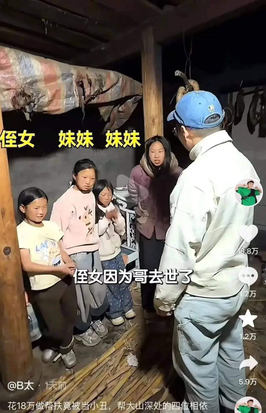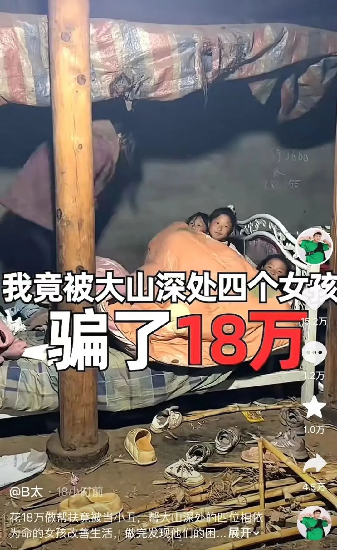 拥有 2600 万粉丝的打假博主 B 太,本是去大山里帮扶困难家庭,结果被四个女孩联手骗走 18 万。