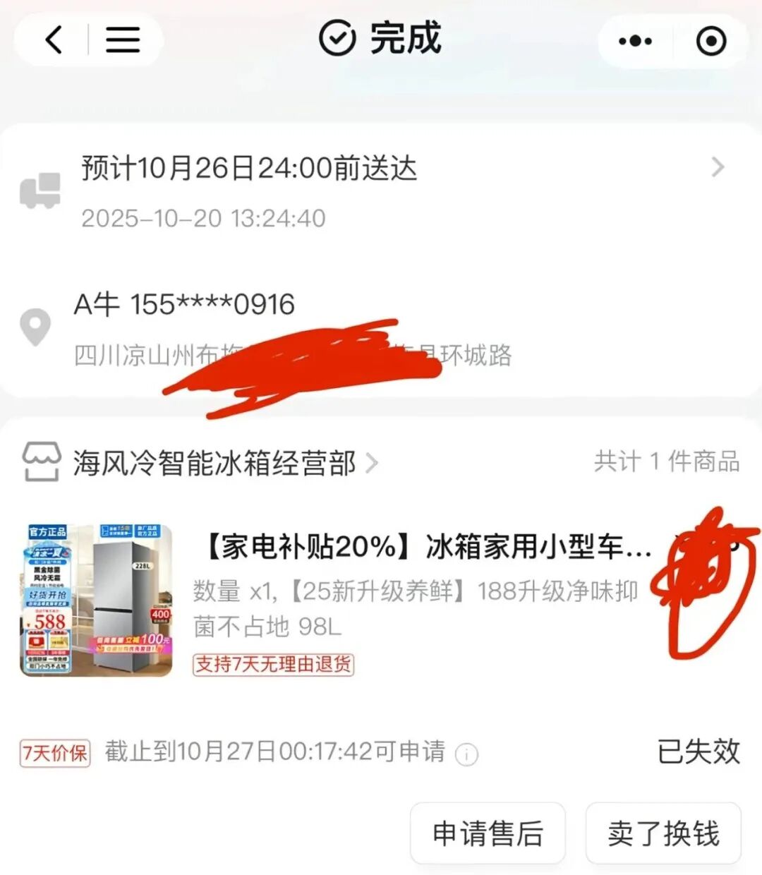 - 有人寄去新冰箱,转头就被卖掉