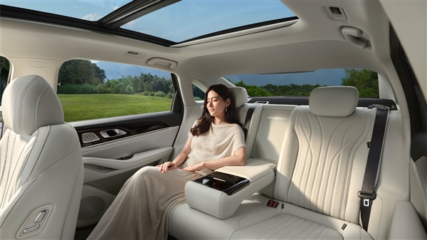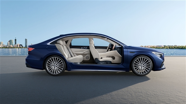 侧面线条流畅修长,采用溜背式车顶设计,侧窗环绕精致镀铬饰条,搭配19英寸“星辉”密辐式轮圈,运动感与豪华感兼备。