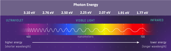 而在光谱里,不同颜色的光携带的能量不一,波长较长的红外光(光子能量<1.12eV)的,那部分就压根派不上用场,可以说是浪费掉了。