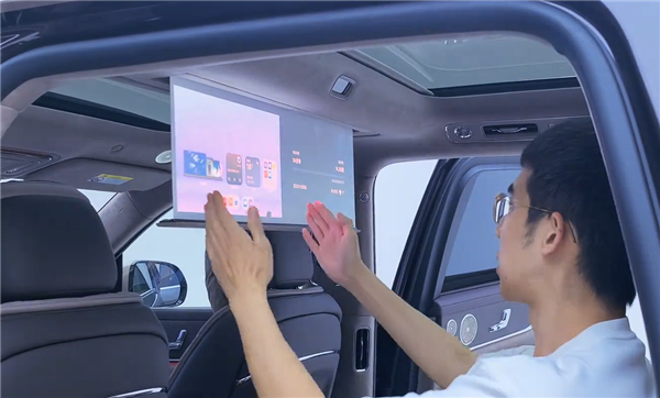 车内投影系统同样也有升级,此次换成了华为自研光机,相比老款第三方光机,显示效果和智能化程度大幅提升: