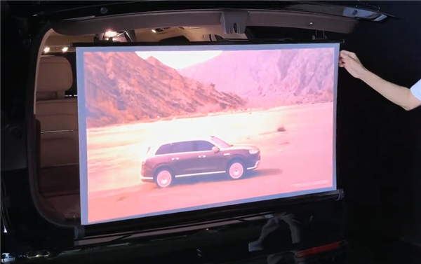 更为好玩的是,此次升级支持车后反向投影,开启露营模式中的露天影院功能,车辆会自动打开后备箱、折叠座椅,搭配专用磁吸镜头套件和幕布即可实现。