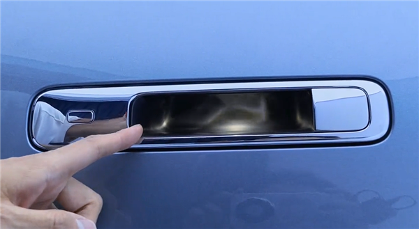 最后,车辆门把手设计精巧,内部设有带旋转结构的照明灯,可投射出波光粼粼的效果,提升整车高级感,进一步强化豪华车带来的情绪价值。