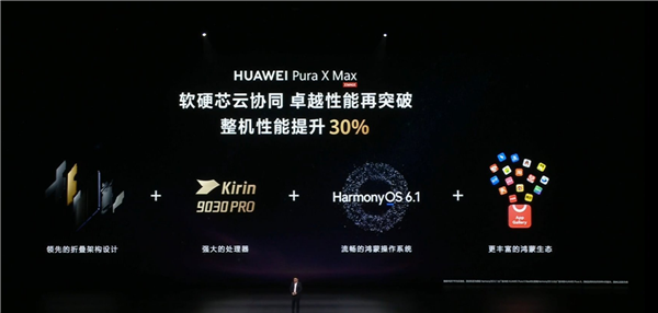 华为将这一提升归因于软硬芯云协同的设计理念,折叠架构设计、麒麟9030 Pro、HarmonyOS 6.1以及鸿蒙生态四者深度配合。