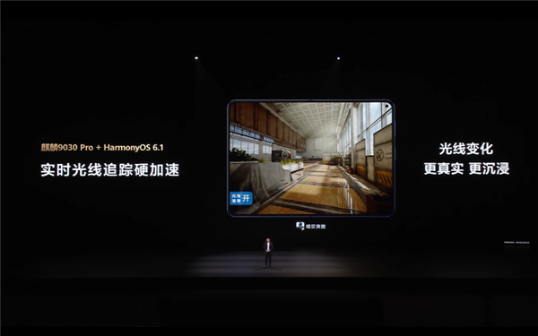 游戏场景方面,麒麟9030 Pro支持实时光线追踪硬加速,在《暗区突围》等游戏中可实现更真实的光影效果。