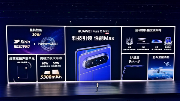 核心配置上,Pura X Max 全系搭载麒麟 9030 Pro,配合鸿蒙 6.1,官方说整机性能提升了 30%,比麒麟 9030S 还猛,这个提升到底有多猛,咱们后续还得看实测。