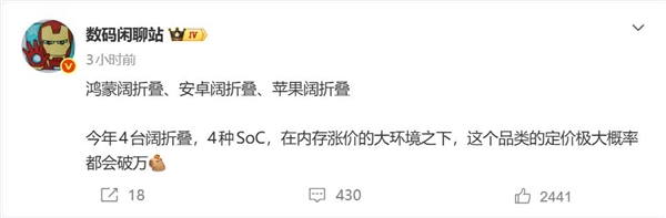 据行业内人士爆料,今年除了华为继续发力外,苹果的iPhone Fold以及三星的Galaxy Z Wide Fold等阔折叠新品也都有望陆续亮相。