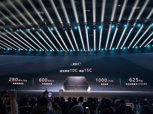 其三元锂电池的电芯质量能量密度达到280Wh/kg,体积能量密度达到600Wh/L,在实现1000公里以上续航的同时,整个电池包重量仅为625公斤。