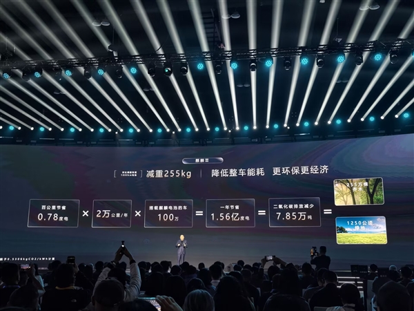 能耗方面,与同电量磷酸铁锂电池相比,整车百公里能耗降低至少6%,每100公里节省0.78度电。按单车年行驶2万公里计算,100万台搭载麒麟电池的车辆一年可节省1.56亿度电,减少碳排放7.85万吨。