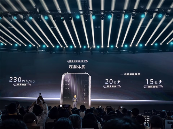 具体方案是以磷酸铁锂的橄榄石晶体结构作为核心骨架,让铁锂和三元材料在粉体颗粒级别实现梯度均匀混合。超混体系能量密度达到230Wh/kg,在电池包重量不变的前提下,续航相比单一铁锂电池直接提升15%至20%。