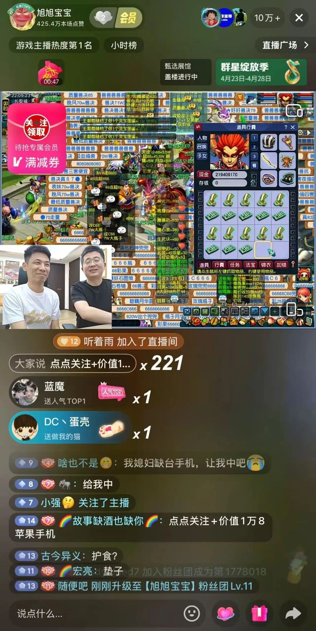 旭旭宝宝来抖音快三年,每晚开播即 10 万 +,人气几乎没掉过线,这在游戏主播里属于降维打击。