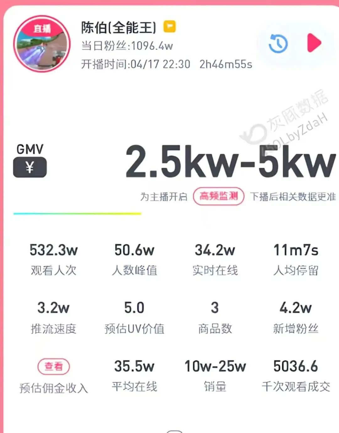 - GMV 直接干到2500 万 – 5000 万,带货总榜第一,甩开第二名几条街