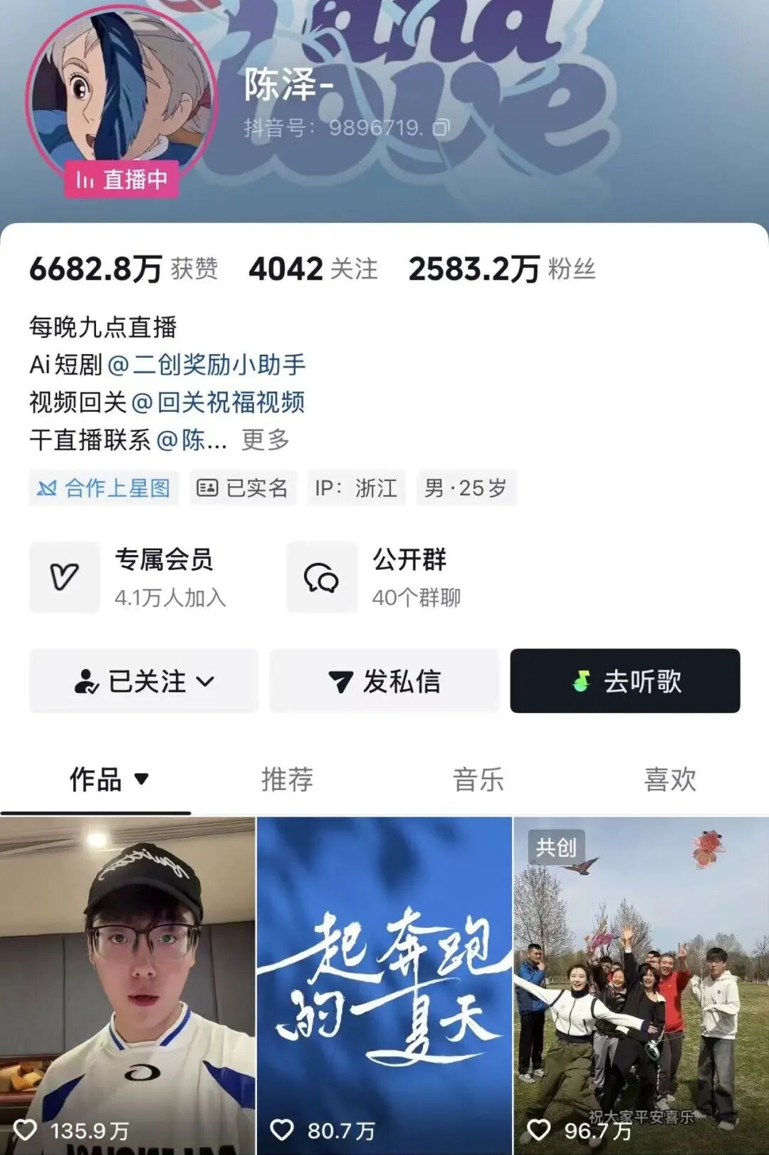 三、陈泽:25 岁快手转抖音,首播炸出 3800 万观看